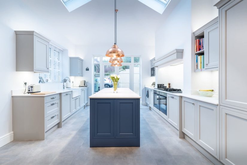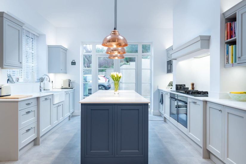 Shaker Masterclass Hawksmoor Kitchen in Light Grey and Windsor Blue