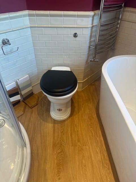 Sold as seen. Excludes: heated towel rail and cistern.