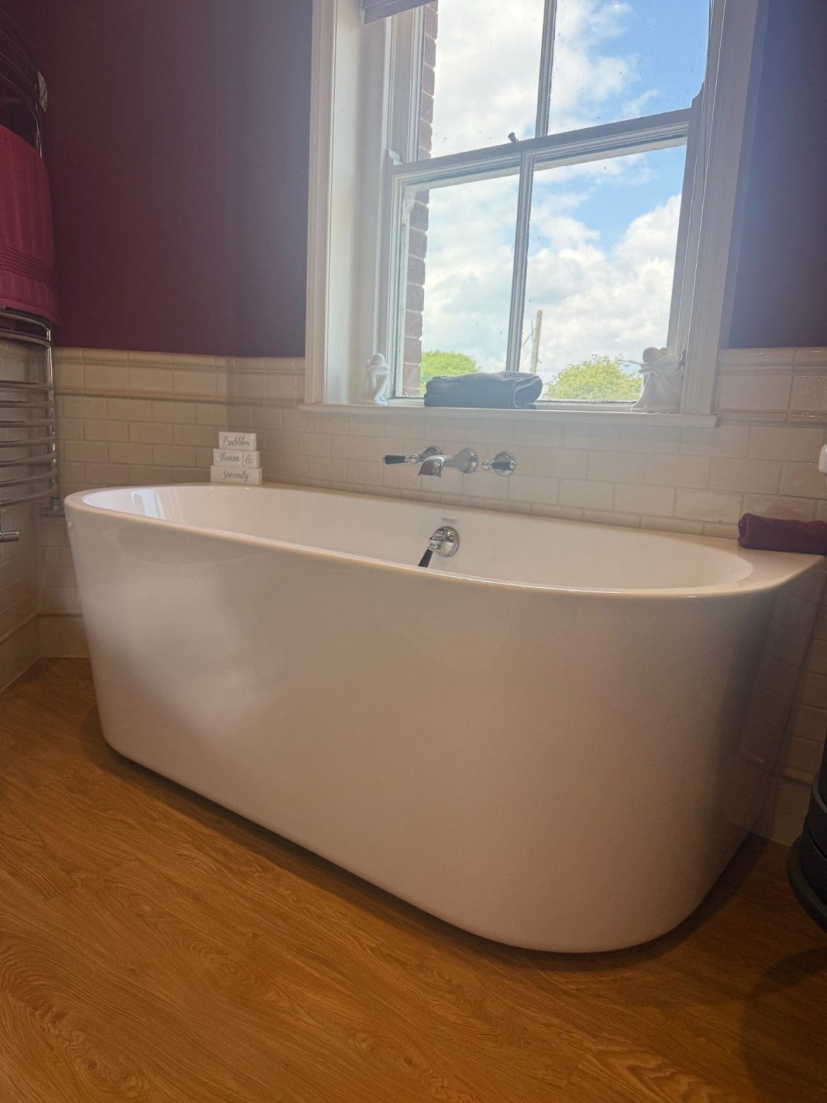 - BC Design Ancora Bath 1640 x 760 with push-down waste and St James wall mounted 3 piece bath filler, chrome with black, London levers