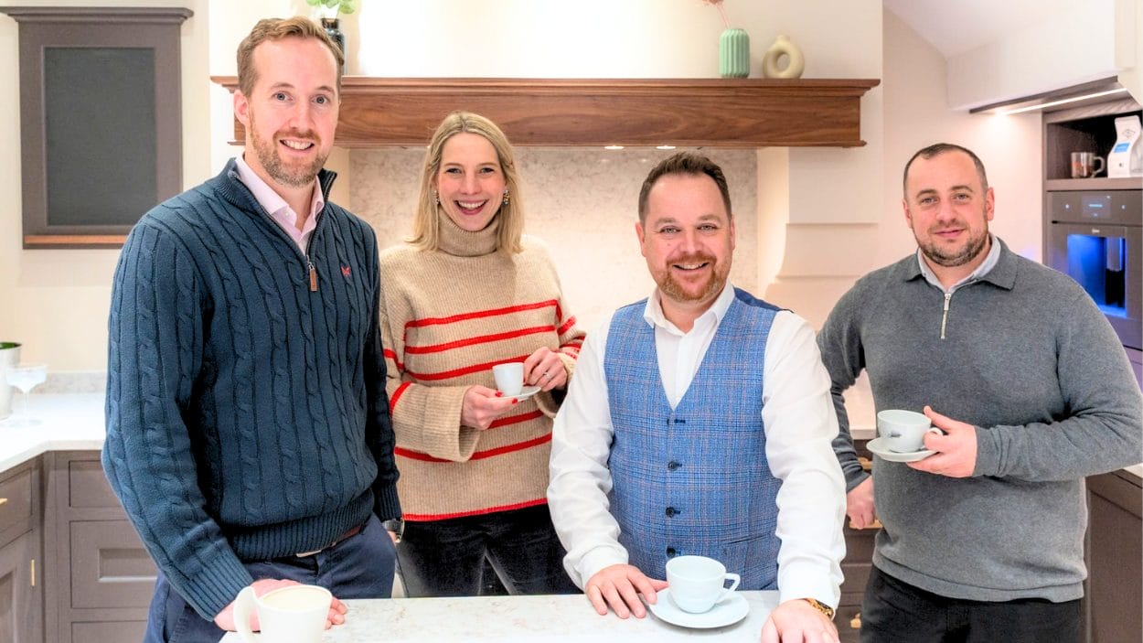In one recent project, we designed and installed a soft blue Mackintosh shaker kitchen that sits comfortably at the heart of the home. The cabinetry was chosen for its timeless proportions and craftsmanship, providing a calm foundation for the space, while Caesarstone worktops offer durability and ease of maintenance.